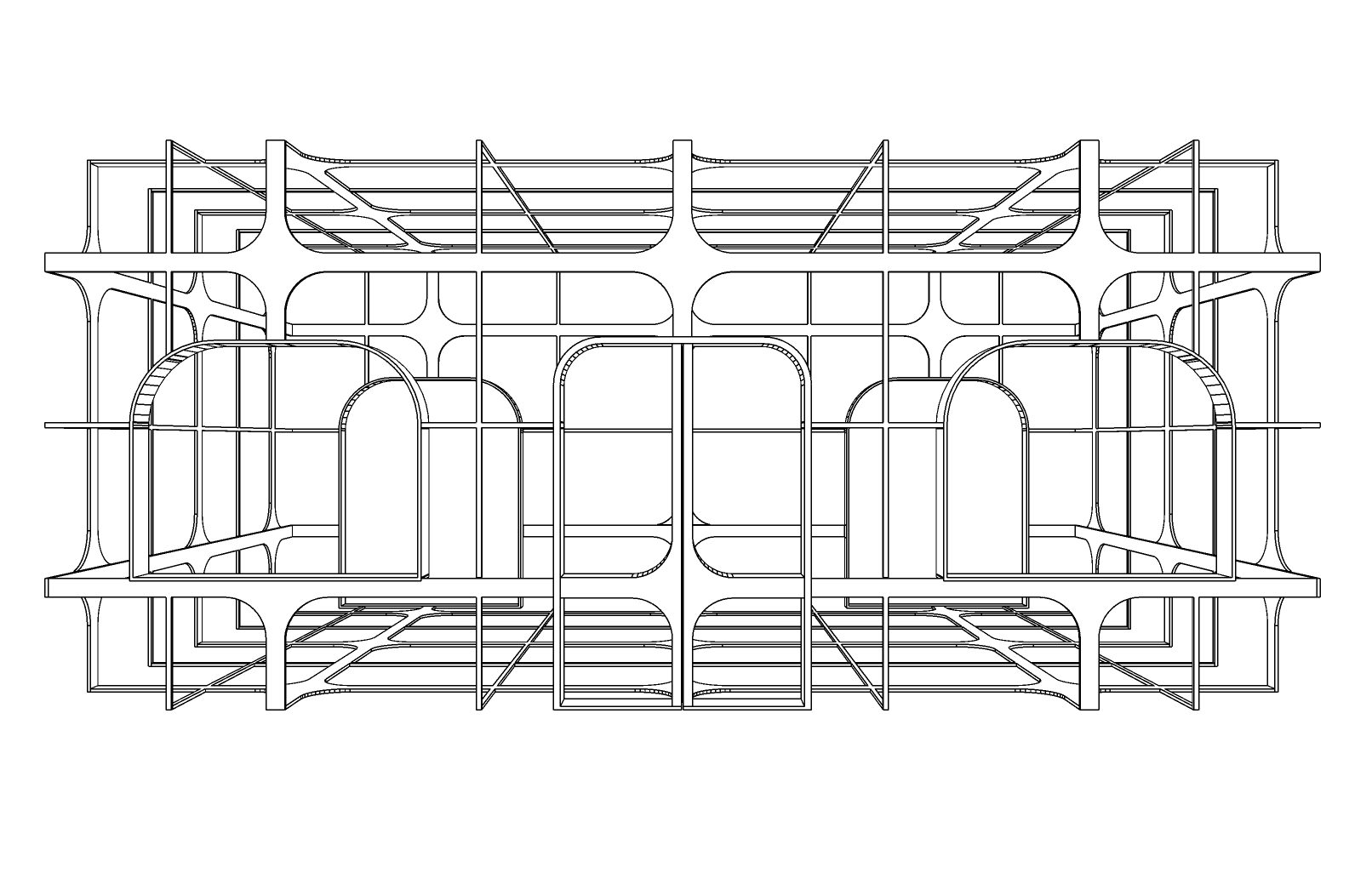 What would it look like if a hotel lobby was molded by its furniture? This concept explores the idea of inlaid furniture—couches, chairs, and tables permanently affixed to the floor—and extends those bindings to encompass a 360° experience of forms and materials reminiscent of mid-century Madison Avenue with a neon twist.